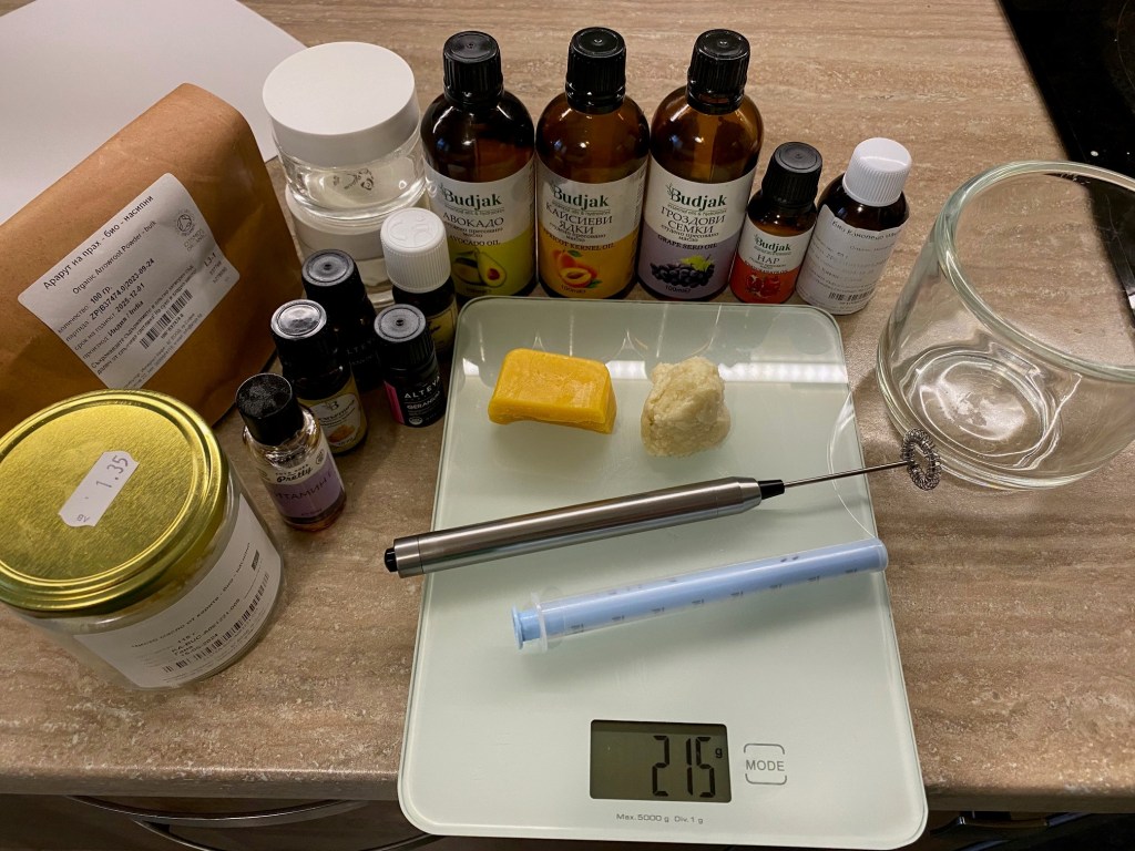 В оригиналната рецепта, която първоначално направих, съставът на маслото от ший е 60 мл. Кремът стана много плътен. Този е по-лек и пухкав.