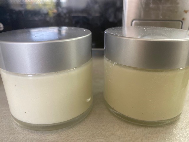 Така разписаната рецепта произвежда точно 2 бурканчета по 50 мл. домашен слънцезащитен овлажняващ крем със SPF поне 40.