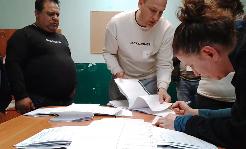 В 20.00 затворихме. Освен комисията (9 човека) и наблюдателите Миролюба и Александър, в секцията имаше още поне 5-6 човека, представители на партии и застъпници. Няма лошо. Законът им дава това право. Но за да се съберем всички и да има условия за отчитане на вота ни трябваше пространство. Мъжете изтръгнаха (буквално) закованите дъски и шперплати на „тъмните стаички“.