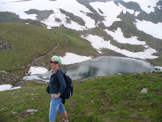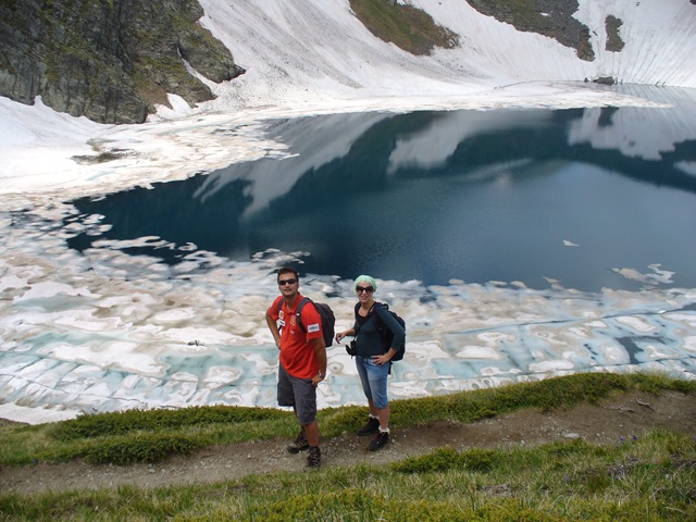 Най-красивото езеро – “Окото” е след това. Нанагорнише, по каманаци….изобщо, много труден маршрут. Ние естествено – право нагоре. Свеки остана по-назад, но и тя успя. Какво беше разочарованието ни, като стигнахме до езерото – все още леда не се беше разтопил и все още езерото беше много замърсено. А и почна да става студено и да пада мъгла….Това в 13.00. Веднага поехме нагоре към последното езеро – “Сълзата”, от което се виждат всички езера. На 2700 метра височина.